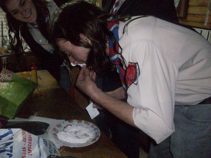 A la tarde tuvimos también varios preparativos, gogos preparo los cartelitos de cada escoyo y yo me encargue de mezclar la bebida apetitosa de los rover...