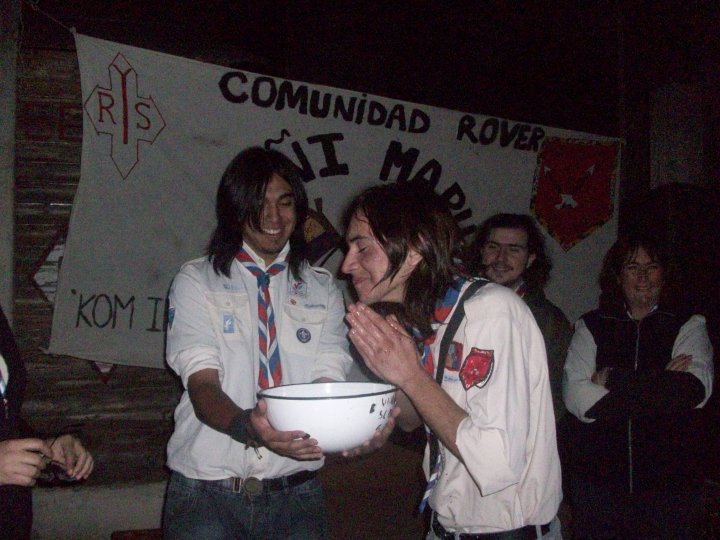 Recibió su insignia PEÑI MAPU (su padrino se la entrego) como primer paso, siendo aceptado por el jefe de rama y la comunidad como parte.