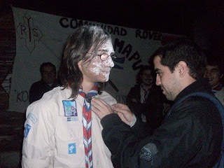Recibió su insignia PEÑI MAPU (su padrino se la entrego) como primer paso, siendo aceptado por el jefe de rama y la comunidad como parte.
